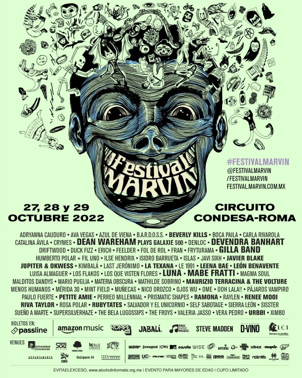 Tras un periodo pandémico que complicó los espectáculos en directo y obligó a la organización del Festival Marvin a realizar su última edición casi completamente en formato de streaming, este año se preparan no sólo para volver completamente en directo, sino que incluirán conciertos más allá del circuito Roma-Condesa de la CDMX, en ciudades como Guadalajara, Puebla y Toluca.